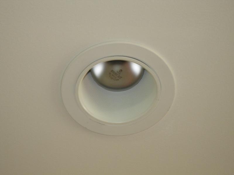 1) Remove the trim of the recessed light. In the picture at the top, this is the white portion that frames out the light.